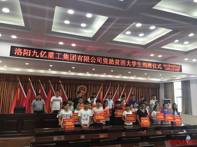 為響應(yīng)洛陽市政府精準(zhǔn)扶貧政策,洛陽九億重工集團(tuán)有限公司及董事長王九茂積極參與捐資助學(xué)的慈善義舉活動(dòng),特做出如下決定:1、公司幫扶磁澗鎮(zhèn)2017年新招貧困大學(xué)生21名順利入學(xué),每人資助2000元,總計(jì)肆萬貳仟元整;