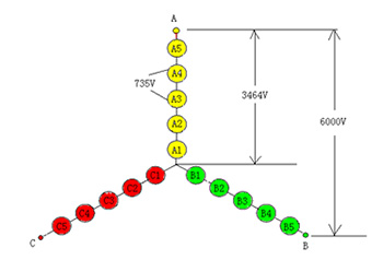 每相由若干個(gè)單元串聯(lián)組成,疊加輸出高電壓