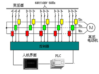 設(shè)備采用高-高電壓源型變頻器電路結(jié)構(gòu),功率單元串聯(lián),輸出疊加成高壓,直接輸出到高壓電機(jī)。