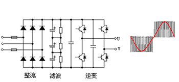 當(dāng)電機(jī)處于拖動(dòng)狀態(tài)時(shí),能量從電網(wǎng)經(jīng)整流回路、逆變回路流向電機(jī),變頻器工作在***、第三象限。輸入電壓和電流波形如圖所示。