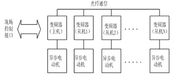 變頻器具備主從控制功能,多臺(tái)變頻器之間可通過數(shù)據(jù)總線組成主從控制網(wǎng)絡(luò)。將其中的一臺(tái)設(shè)為主機(jī),其他設(shè)為從機(jī),主機(jī)實(shí)時(shí)采集各從機(jī)的狀態(tài)信息,同時(shí)發(fā)送給各從機(jī)頻率、轉(zhuǎn)矩指令,實(shí)現(xiàn)各臺(tái)變頻器的功率平衡和綜合控制。